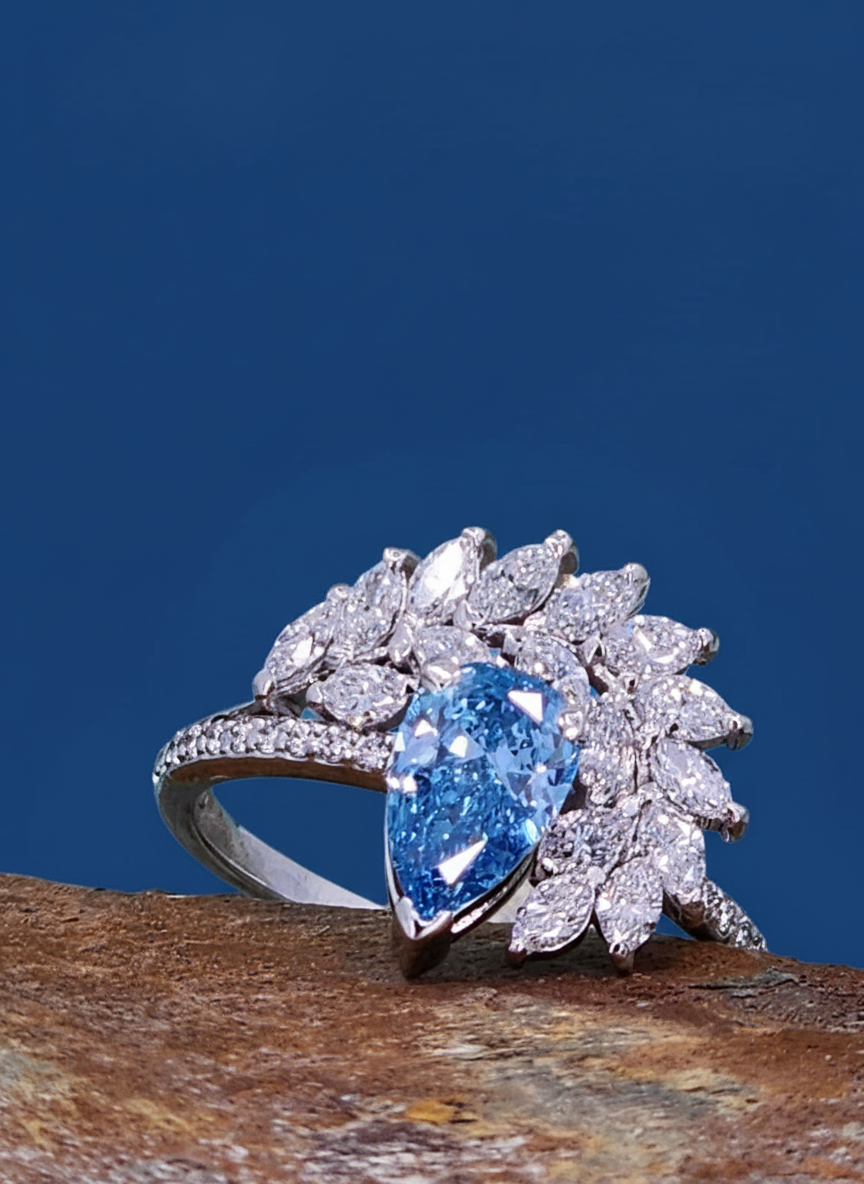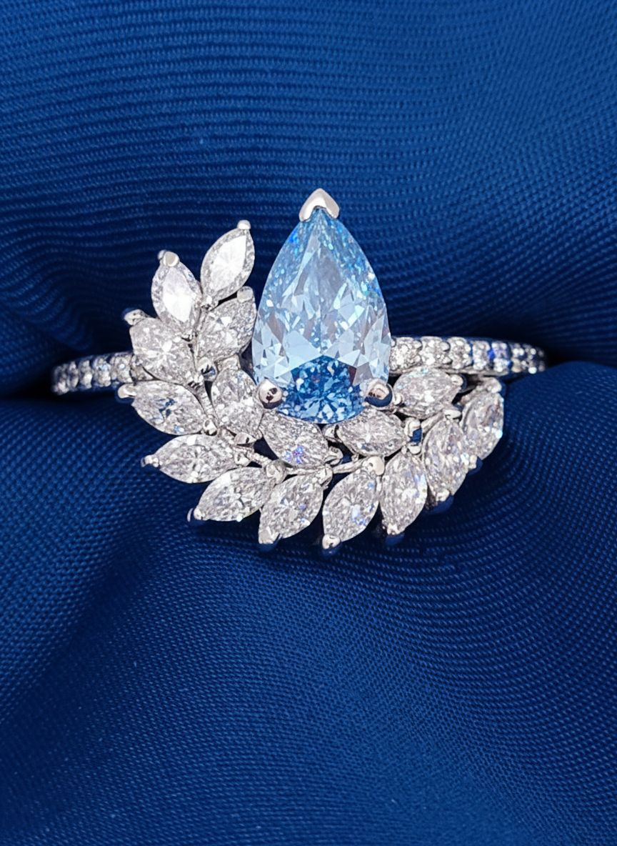 Blue Pear Shape Diamond Ring